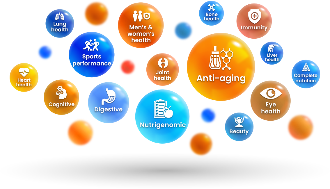 We formulate and develop nutraceutical supplements and products to cover a diverse range of health functions as follows: